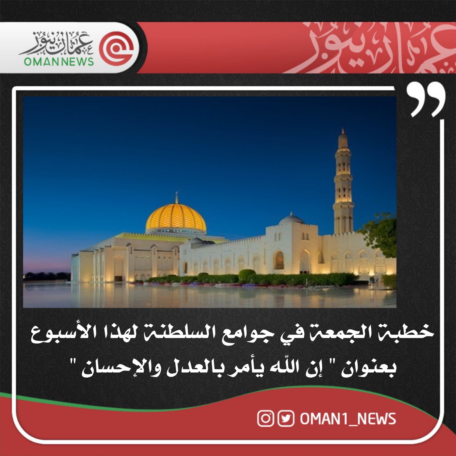 إن الله يأمر بالعدل والإحسان روي عن عثمان بن مظعون أنه قال. إن الله يأمر بالعدل والإحسان. إ ن الل ه ي أ م ر ب ال ع د ل و الإ ح س ان و إ يت اء ذ ي.