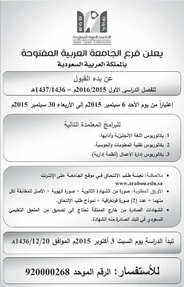 البعثات الخارجية السعودية 2015