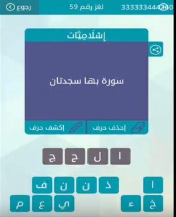 ما هي السورة التي وردت فيها سجدتان في القران الكريم مكونة من أربعة 4 أحرف لعبة وصلة ثقف نفسك 2018 لغز رقم 215 مرحبا بك عزيزي الزائر من خلال موقع حلول مناهجي يقدم لكم إجابة السؤال الذي يبحث عنه الكثيرين من الأشخاص عن معرفة. ما هي السورة التي وردت فيها سجدتين في القرآن الكريم اهلا بكم في موقع نصائح من أجل الحصول على المساعدة في ايجاد معلومات دقيقة قدر الإمكان من خلال إجابات وتعليقات الاخرين الذين يمتلكون الخبرة والمعرفة بخصوص هذا السؤال. ما هي السورة التي لم تبتدأ بالبسملة سورة التوبة هي التي لم تبتدأ بالبسملة في القرآن.