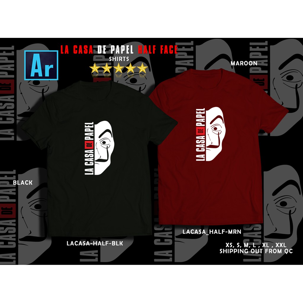 Ar Store La Casa De Papel Money Heist Half Face Logo Customized Shirt Unisex Shopee Philippines